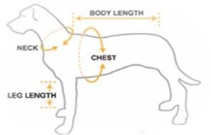 | Size | Body Length (inches) | Chest (inches) | Neck (inches) | | XXS | 6-7 | 9.5-11 | 7-8.5 | | XS | 7-7.5 | 11-12.5 | 8.5-9.5 | | S | 8-9 | 12.5-14 | 9.5-10.5 | | M | 9.5-10.5 | 14-15.5 | 10.5-11.5 | | L | 11.5-12.5 | 15.5-17 | 11.5-12.5 | | XL | 12.5-13.5 | 17.5-19.5 | 13.5-15 | | XXL | 14-15 | 21-23 | 15-16.5 | |